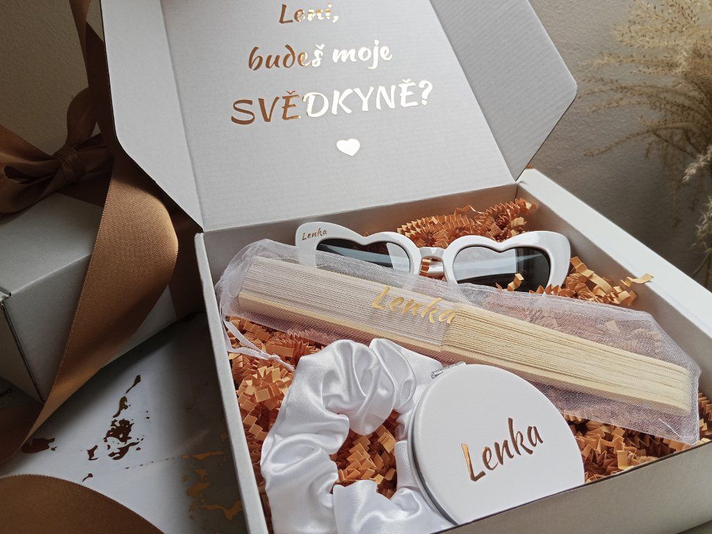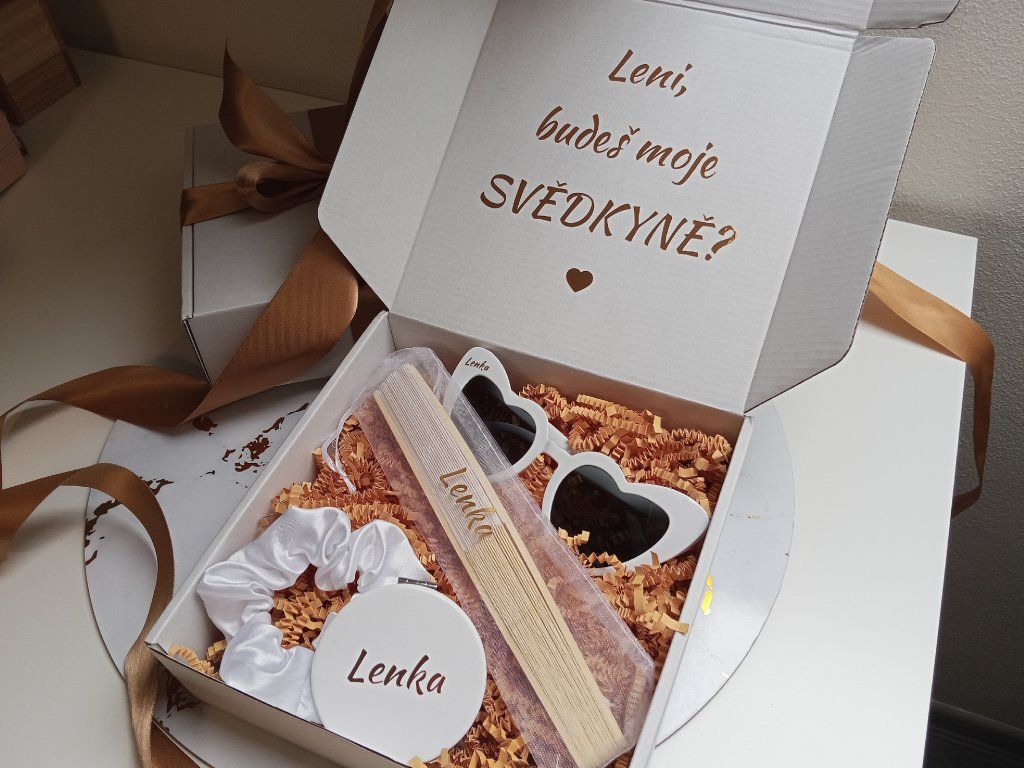 Součástí balíčku je také prostor pro osobní žádost „Budeš moje svědkyně?“ předat jedinečným způsobem.