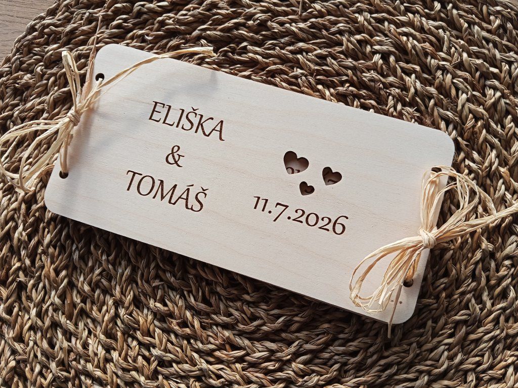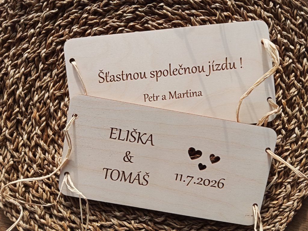 Dřevěná obálka na peníze je vyrobena z kvalitní překližky a precizní laserové gravírování jí dodává osobitý charakter – lze jej přizpůsobit jmény novomanželů, datem svatby nebo krátkým věnováním.