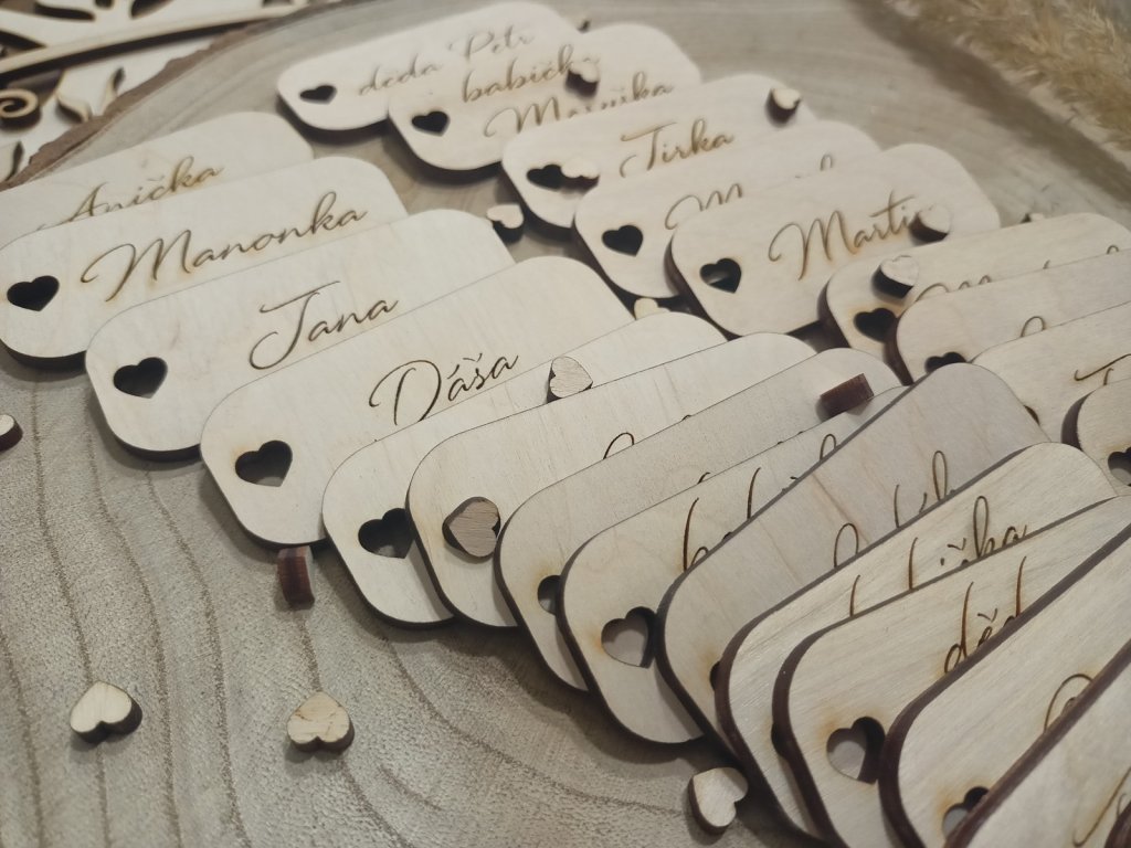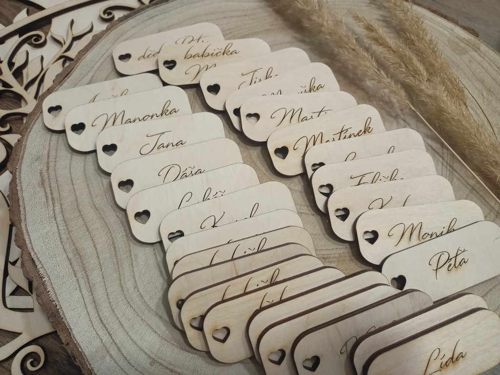 Představte si slavnostně prostřenou tabuli, jemné světlo svíček, šum hlasů vašich nejbližších… A na každém místě krásná dřevěná jmenovka, která nese jméno s láskou vybrané osoby. Je to víc než jen doplněk. Je to gesto. Vzpomínka. Malý detail.