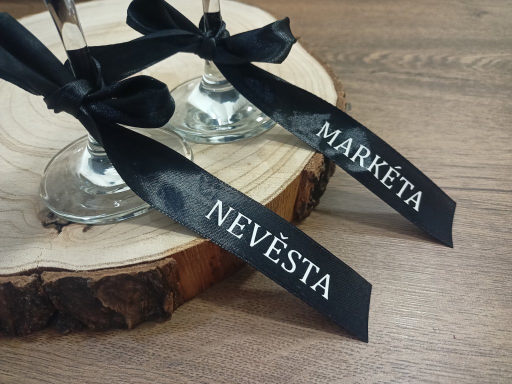 - Délka stužky je 50 cm, šířka 2,5 cm, barva textu bílá