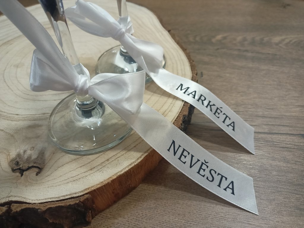 Naše svatební stužky se jménem pomáhají vytvořit útulnou a slavnostní atmosféru, která podtrhne jedinečnost vaší svatby.