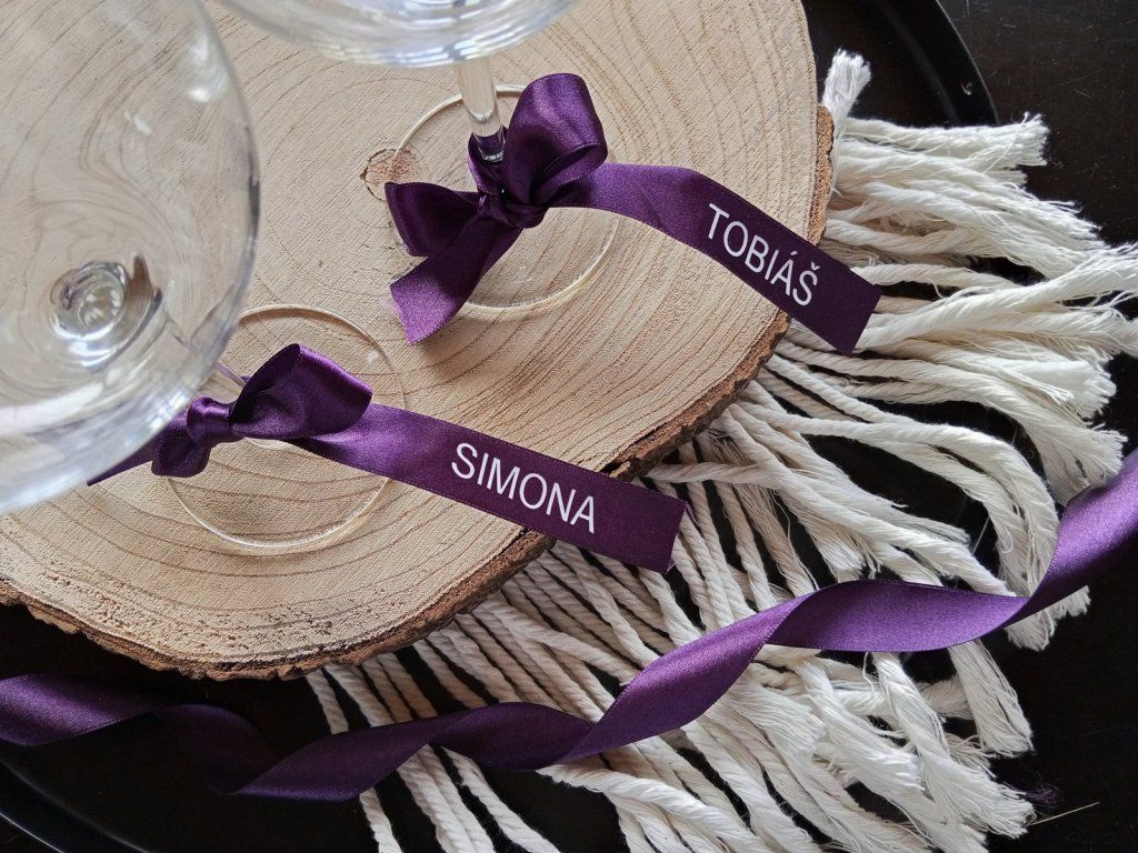 Personalizované stužky využijete jako jmenovky na svatební tabuli, ozdobu ubrousků, skleniček, svatebních výslužek nebo dárků pro hosty. Jsou nejen praktickým prvkem organizace zasedacího pořádku, ale také krásným detailem pro svatební fotografie.