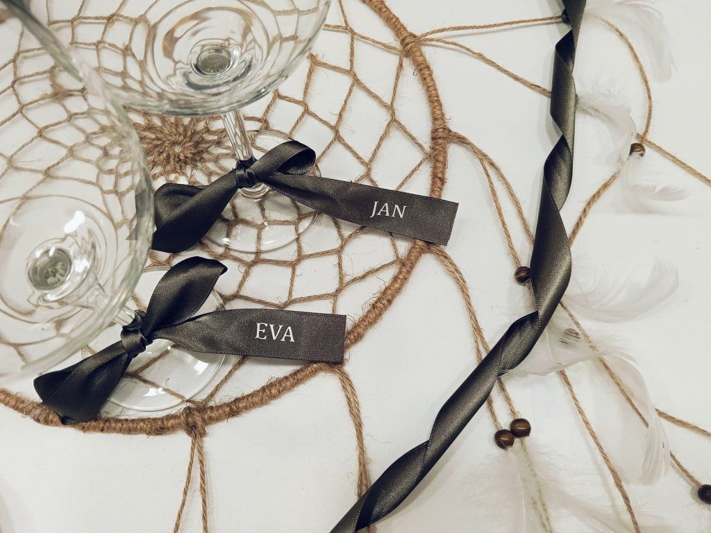 Personalizované stužky využijete jako jmenovky na svatební tabuli, ozdobu ubrousků, skleniček, svatebních výslužek nebo dárků pro hosty. Jsou nejen praktickým prvkem organizace zasedacího pořádku, ale také krásným detailem pro svatební fotografie.