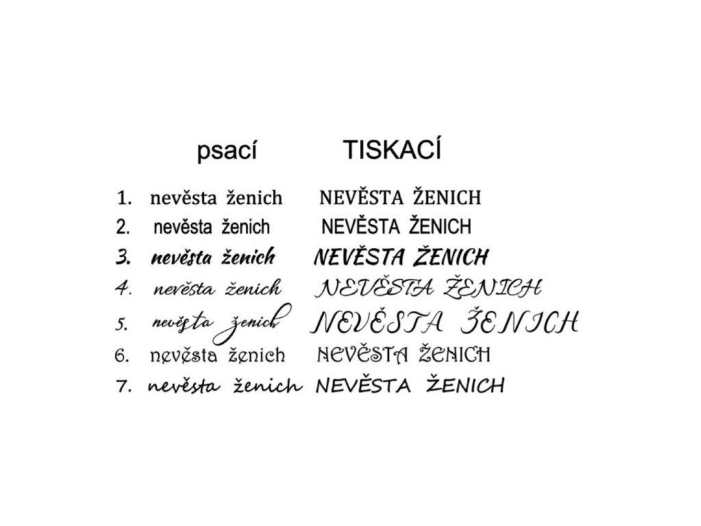 Barva písma - černá, bílá, zlatá nebo jiná dle přání.