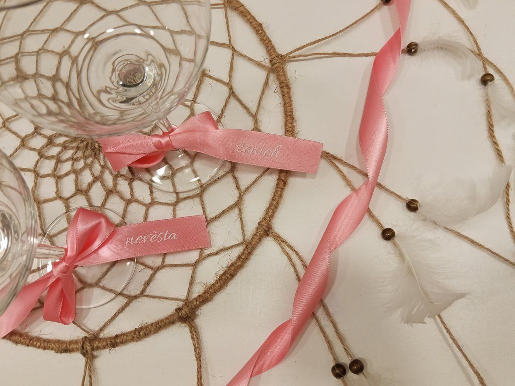 Personalizované stužky využijete jako jmenovky na svatební tabuli, ozdobu ubrousků, skleniček, svatebních výslužek nebo dárků pro hosty. Jsou nejen praktickým prvkem organizace zasedacího pořádku, ale také krásným detailem pro svatební fotografie.