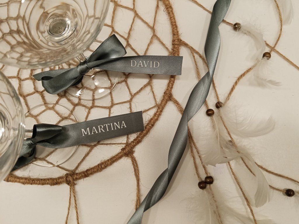 Personalizované stužky využijete jako jmenovky na svatební tabuli, ozdobu ubrousků, skleniček, svatebních výslužek nebo dárků pro hosty. Jsou nejen praktickým prvkem organizace zasedacího pořádku, ale také krásným detailem pro svatební fotografie.