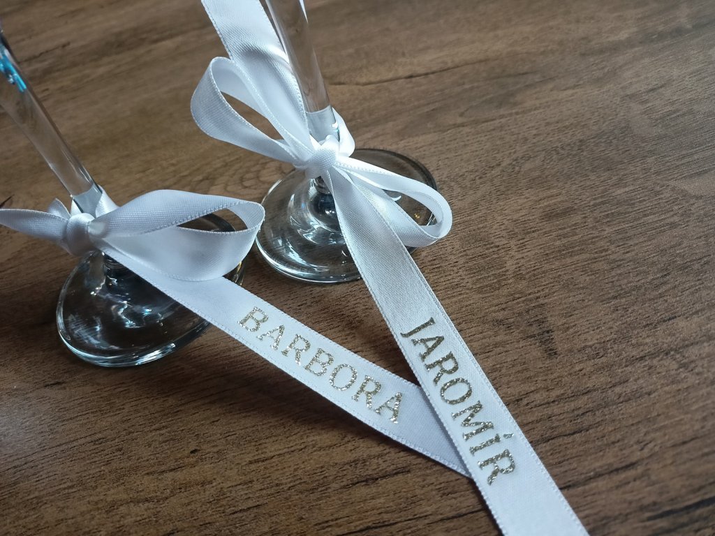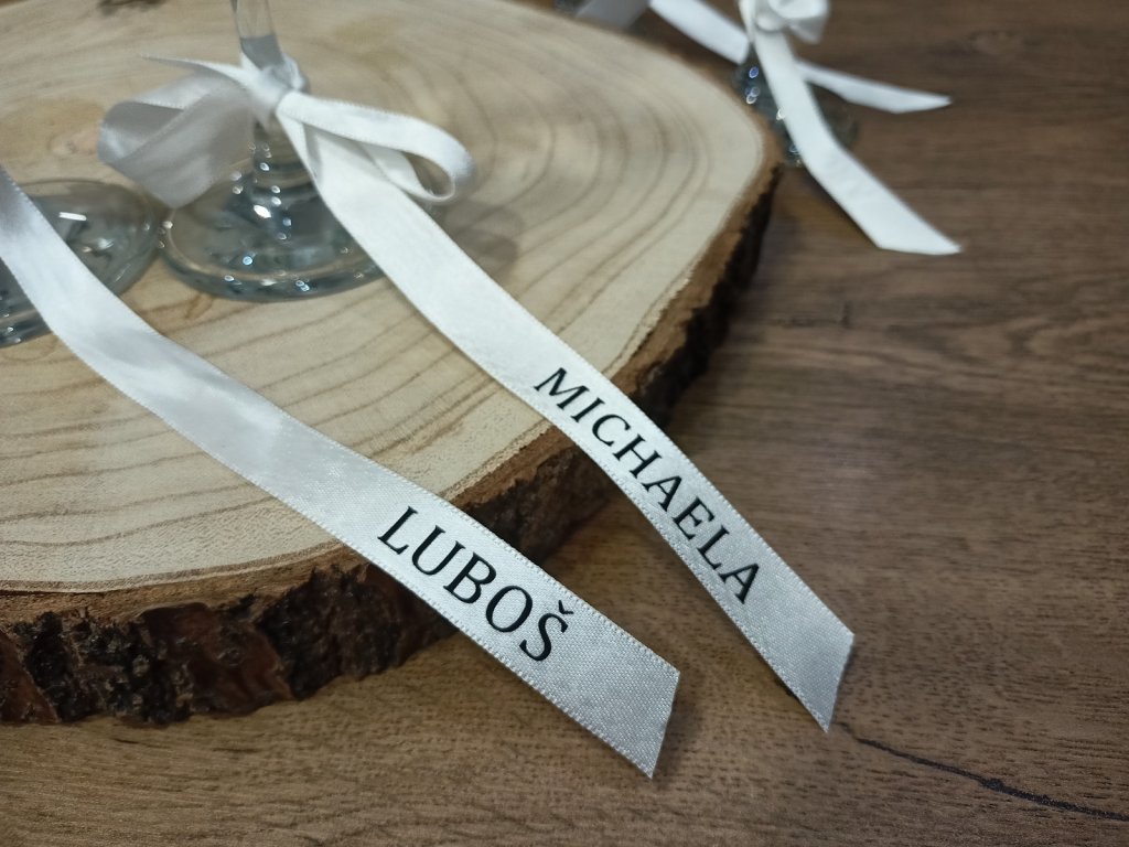 Naše svatební stužky se jménem pomáhají vytvořit útulnou a slavnostní atmosféru, která podtrhne jedinečnost vaší svatby.