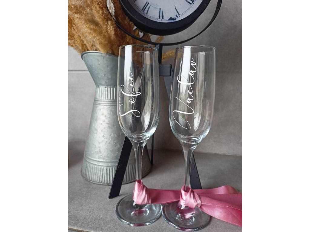 Skleničky se jmény: pro první přípitek novomanželů, svatební oslavy