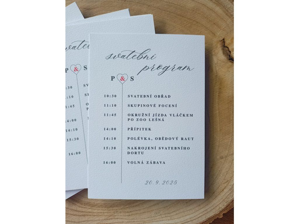 Kartička se svatebním programem je stylový a přehledný průvodce svatebním dnem, který potěší vaše hosty a podtrhne připravenost celé oslavy.